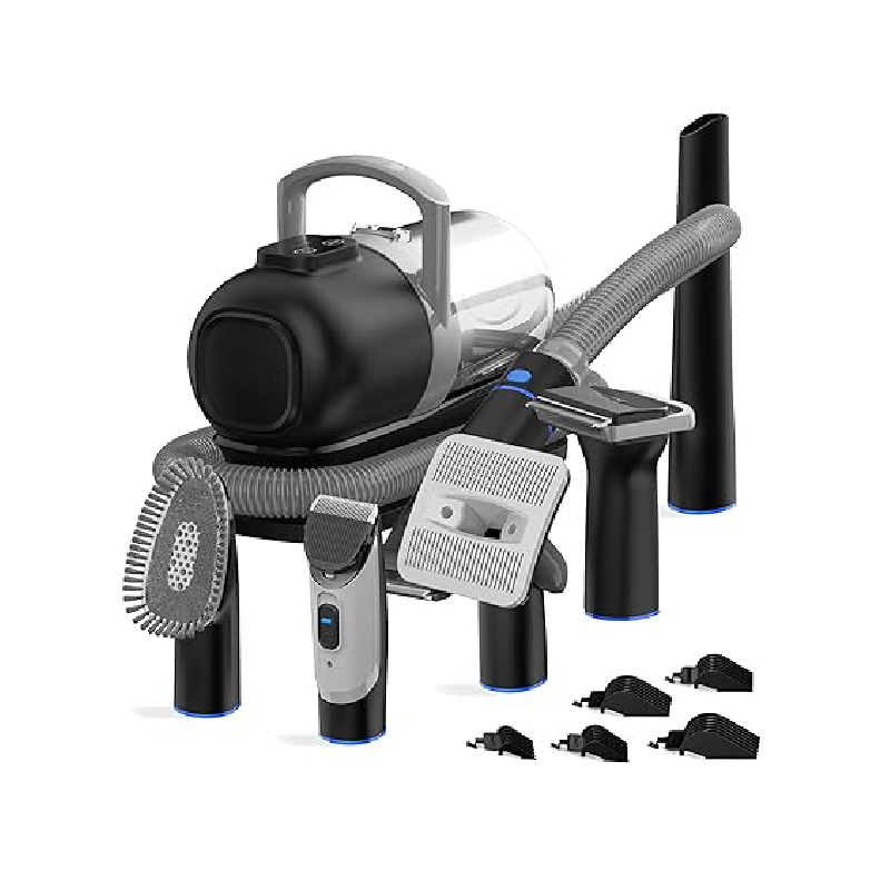 This multi-functional dog grooming kit is your all-in-one solution for at-home care, featuring an upgraded vacuuming function that collects up to 99% of loose hair, keeping your home spotless. With an extra-large 2.5-liter capacity and a new triple filtration system, you can groom more and empty less, tackling even the thickest coats. Say goodbye to the hassle of flying fur and hello to a cleaner, happier grooming experience for both you and your dog.